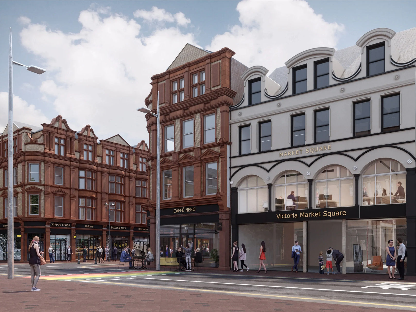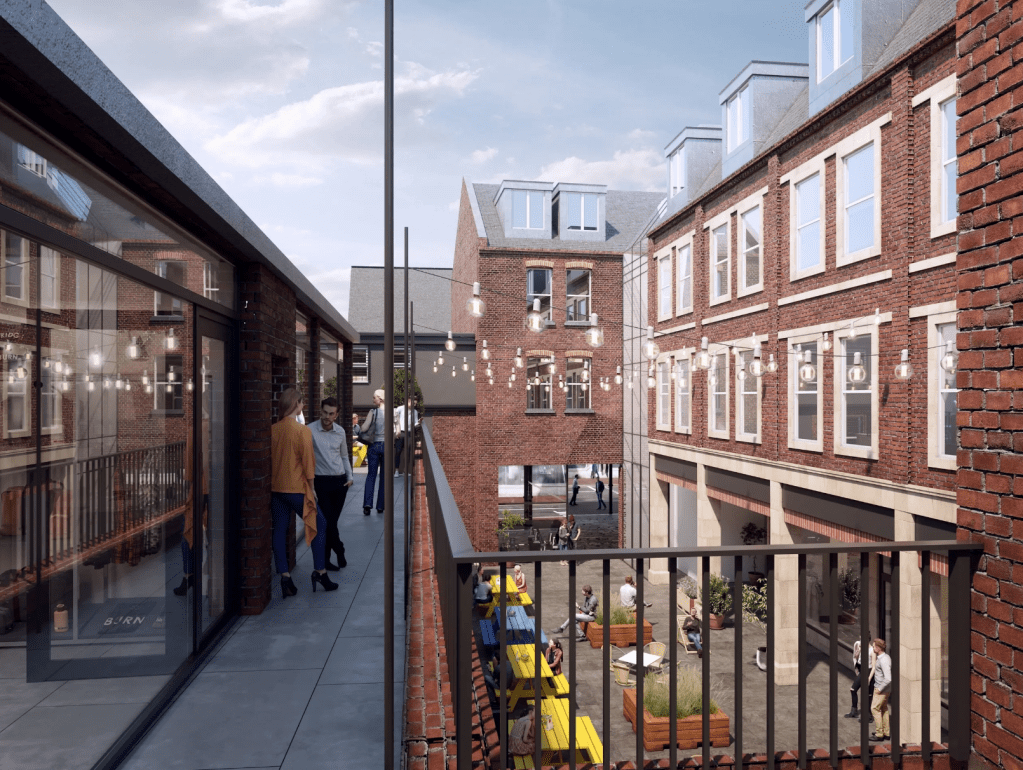 An exciting new heritage-led regeneration of Queen Victoria Street has just been unveiled online. The courtyard retail scheme behind the early 1900’s thoroughfare, will see the upper floors of those period buildings converted to an apart hotel, with linkage through to the new square. Around the corner, further restored buildings will also provide access.