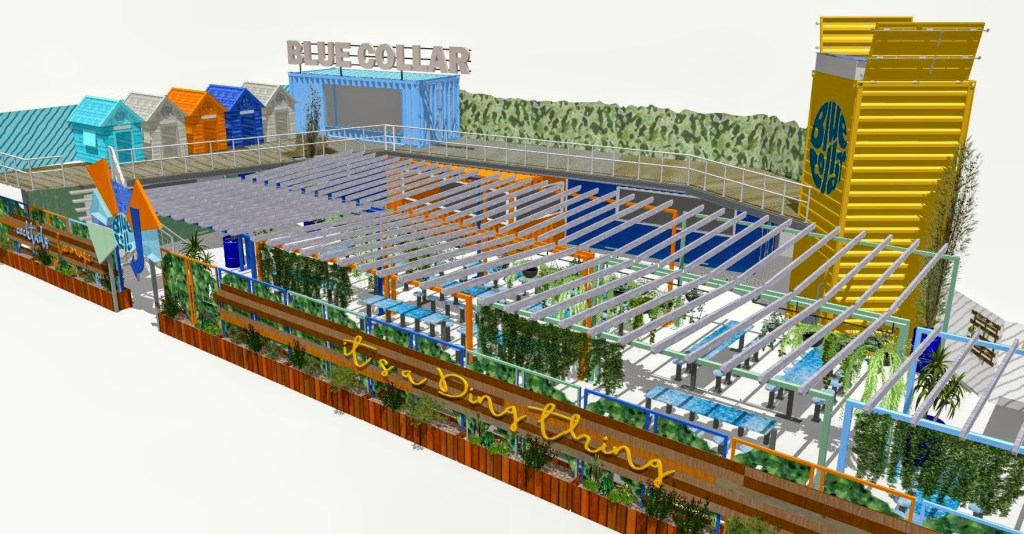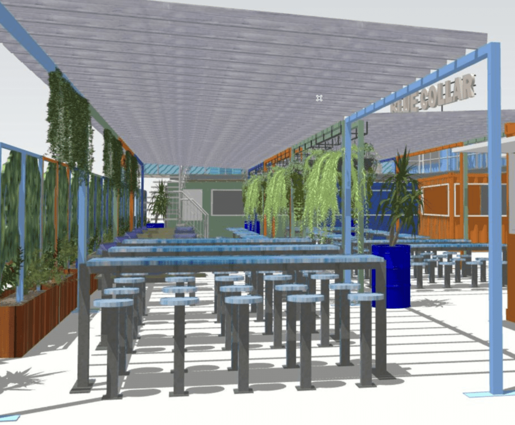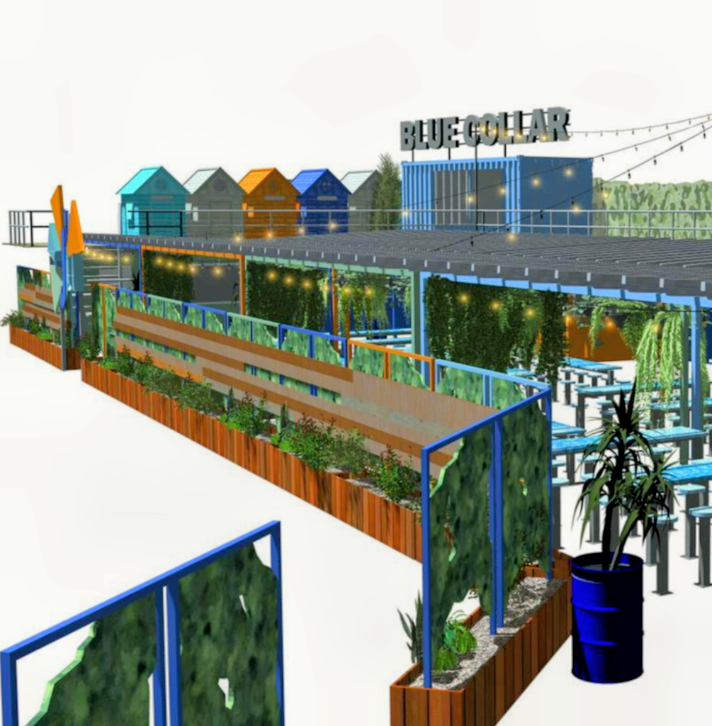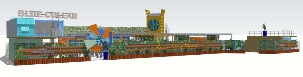 Lots of hard work – we’ll be bringing in and adapting shipping containers which will create a bar, kitchens for four food operators to be permanently based from and two levels with rooftop seating. We want lots of colour and artwork – on one of the walls we’ll roll on the posters from all the Blue Collar events, on another we’ll celebrate the old school market traders, there are some brilliant photos from the market in the 60s and 70s. This is going to be undeniably Reading & all about celebrating our town and everything it stands for. There will be a pergola that will go from one side of the space to the other, with greenery and lighting hanging off it. In the summer, it’ll be the biggest beer garden in the town centre, in the winter we’ll adapt it so it’ll be fully covered, enclosed and feel more like an indoor venue.