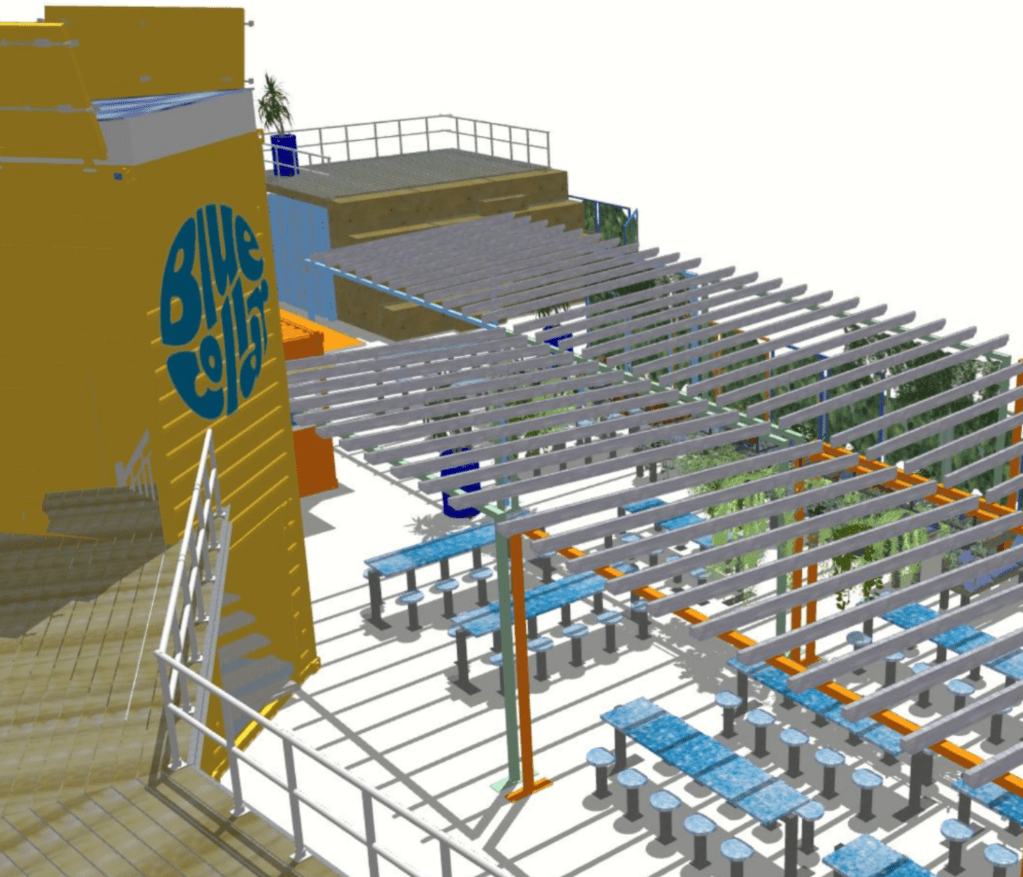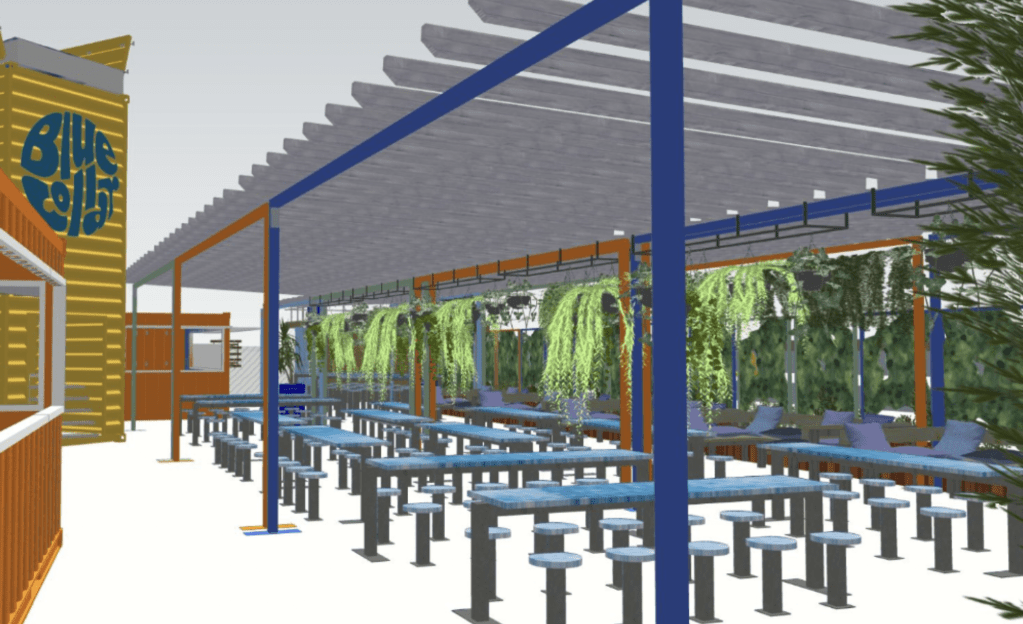 Blue Collar Corner will adapt throughout the year, we’ll celebrate the summer with the site covered in greenery, the roof off and both floors making it a massive beer garden. As the seasons change, we’ll replace the greenery with Autumnal leaves, add in heaters and cover the site to make it a cosy, semi-indoor venue.
