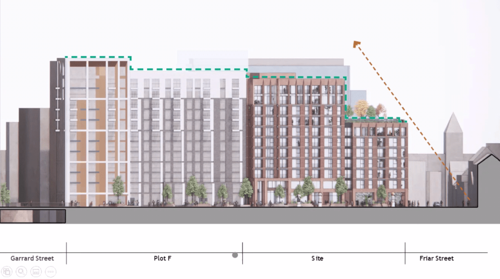 The council will be pleased that the developer will fully comply with the 30% affordable homes target, which will be provided as reduced rental properties. There are roof gardens on the first floor (Cosmo’s roof) and then at the 7th floor, with access available to all tenants. At ground floor, the new shops and residential entrances are set back two metres under a new colonnade for shelter. The developer would be working with Station Hill around the landscaping for the open Friar’s Walk route.
