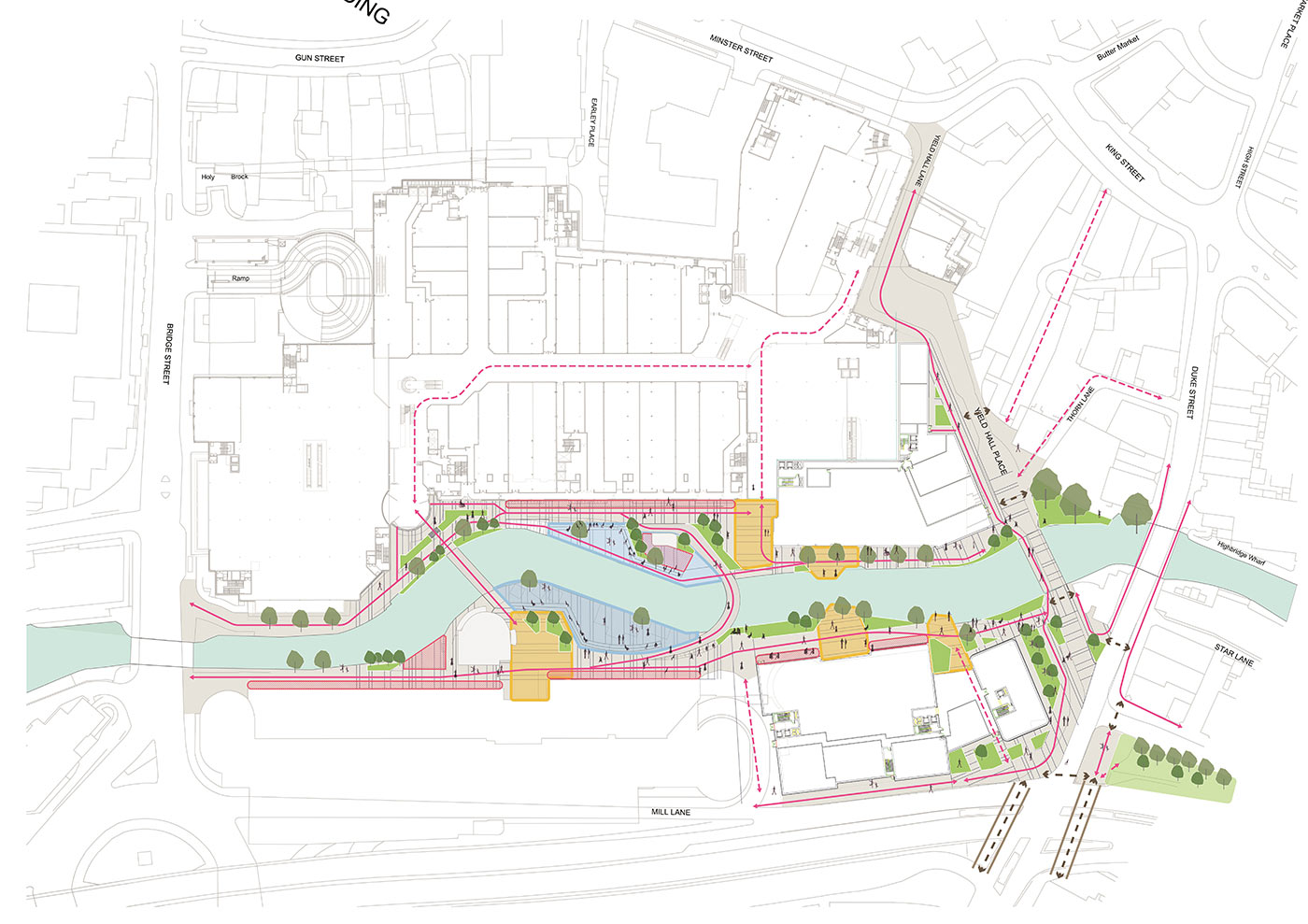 The details of the scheme are literally sketchy at present, with the developer at pains to state designs are indicative. Feedback is invited to help shape the evolution of the plans. With some 80,000 sq ft of former Debenhams currently sitting doing nothing, I think this plan to divide that space between leisure and co-working should keep the centre busy through the day and into the evenings and weekends. Could the co-working riverside frontage be relocated to a set-back first floor terrace to free up space to retain the popular Franco Manca and Real Greek spots? And maybe the Oracle could do a favour to Kings Walk by opening an entrance down into Yield Hall place with perhaps leisure units on the ground floor?
