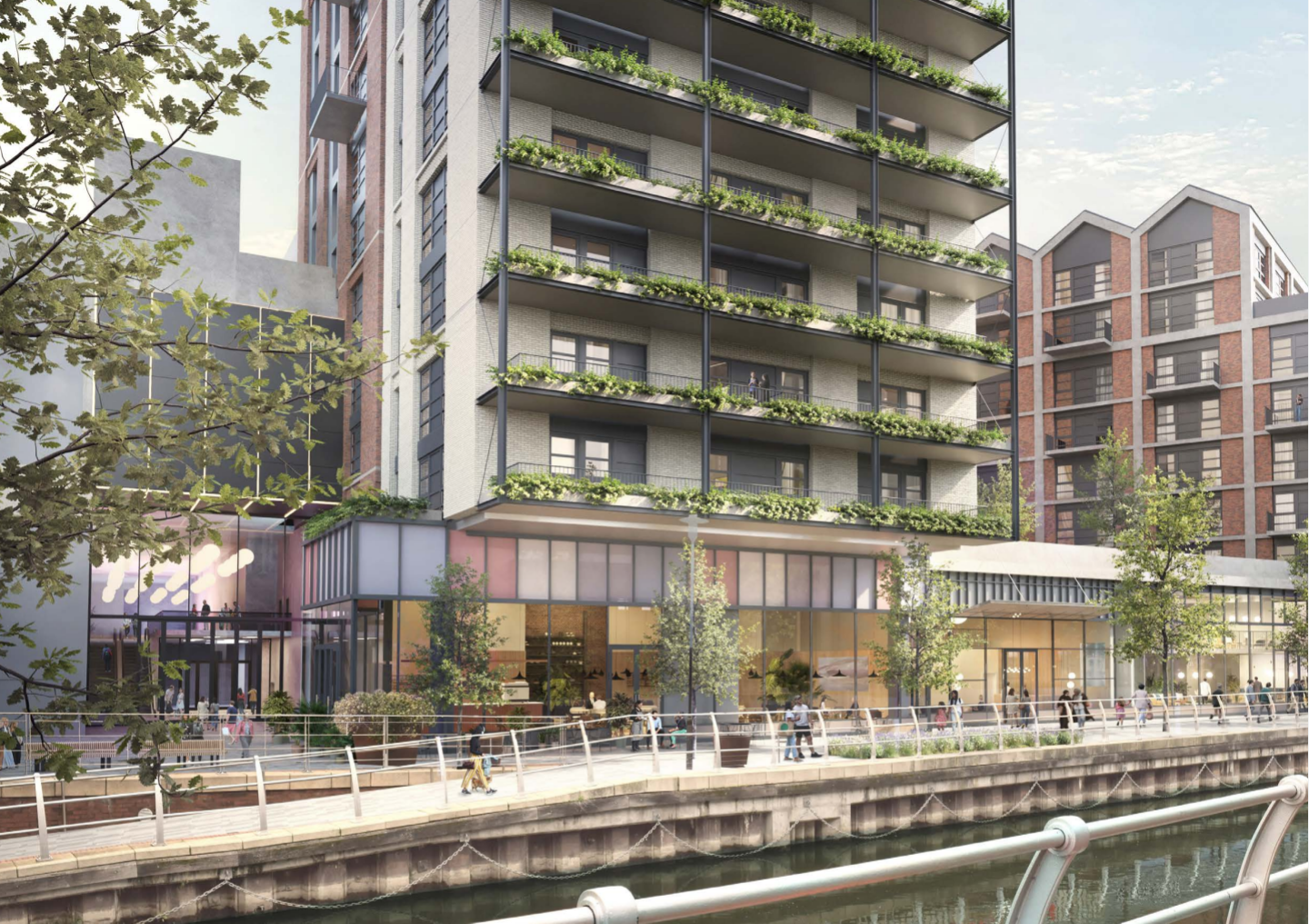 I’ve covered this major scheme already, but with the full plans now visible online we can see all the details. The proposed 449 build-to-rent apartments are split either side of the river, with 202 on the Debenhams side and 247 on the Vue side. The cinema stays but is reduced from 11 to 7 screens. The visual above shows the scheme from the east, with the buildings reducing down to five storeys at the London Street end, with rooflines vaguely echoing the former bus depot that many will remember from the site’s former life.