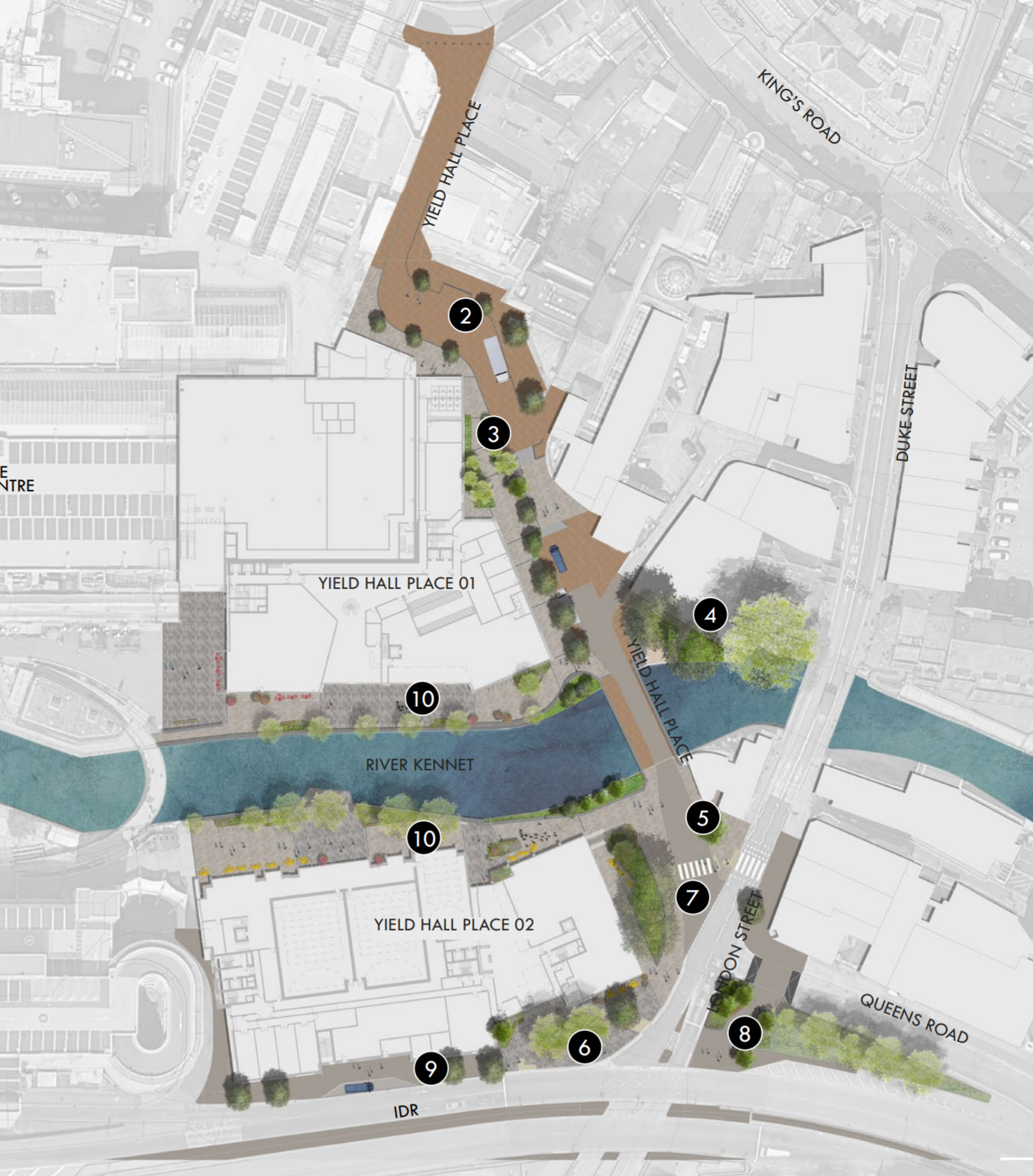 We also see proposals for further landscaping, including 37 new trees (34 net additional). Environmental credentials extend to the water source heat pump proposals for energy, driven from the Kennet. However to term Yield Hall place as a “woodland walk” is a bit of a stretch, even though it should be an improved environment to the current abandoned side of Debenhams.