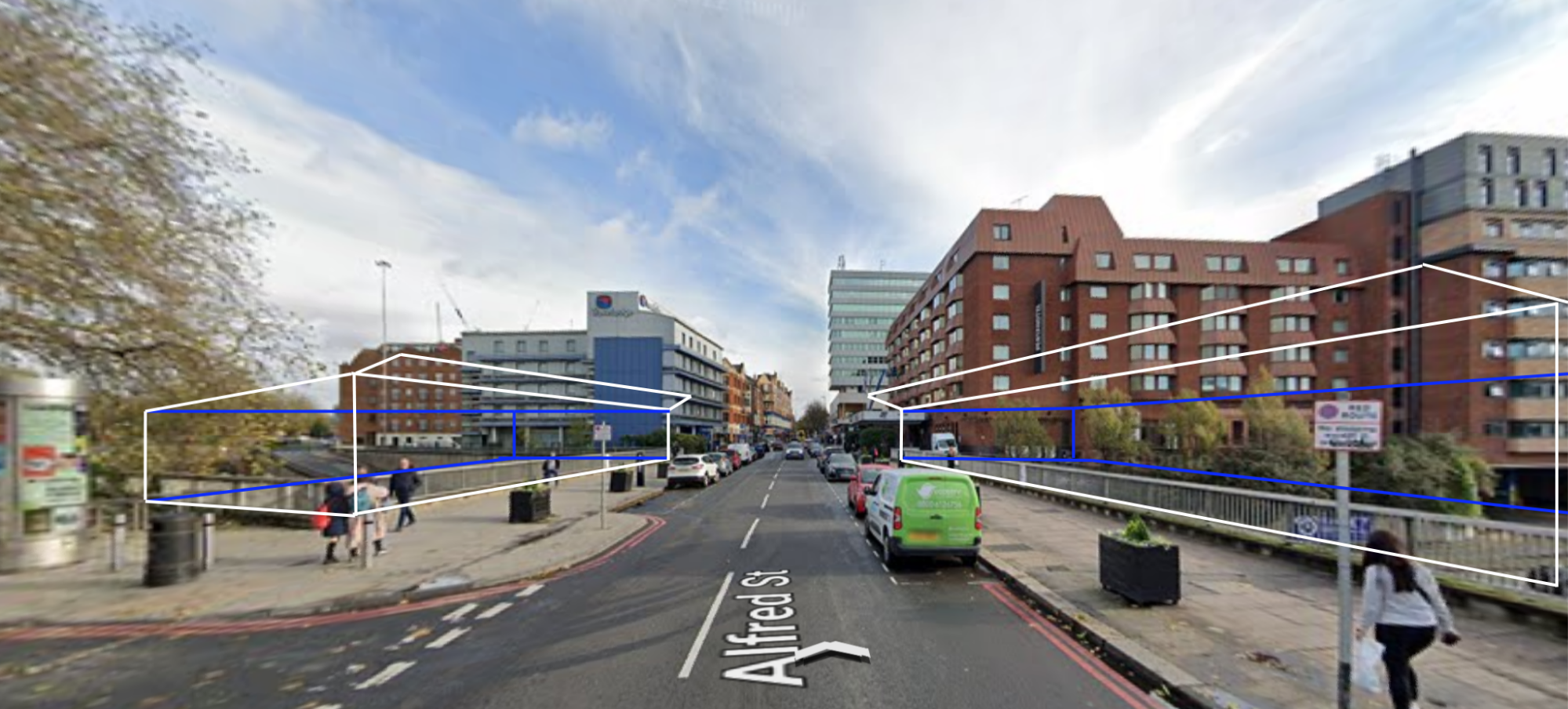 Could we yet proceed with a simpler alternative to the vast decked sections across the IDR? How about a narrow extension to both sides of the Oxford Road bridge, to provide lightweight single-storey retail along the length of the crossing. This would shield the sight and sound of the inner ring road below, and with the removal of a handful of street parking bays as well, that space could be given to planting, or a cycle lane. We could transform this desolate, uninspiring traipse into a welcoming, vibrant continuation of the town centre over to West Reading. Could we yet convince McLaren to contribute towards an intervention such as this? After all, it’s to the benefit of their own customers now being asked to park up at Chatham Place.