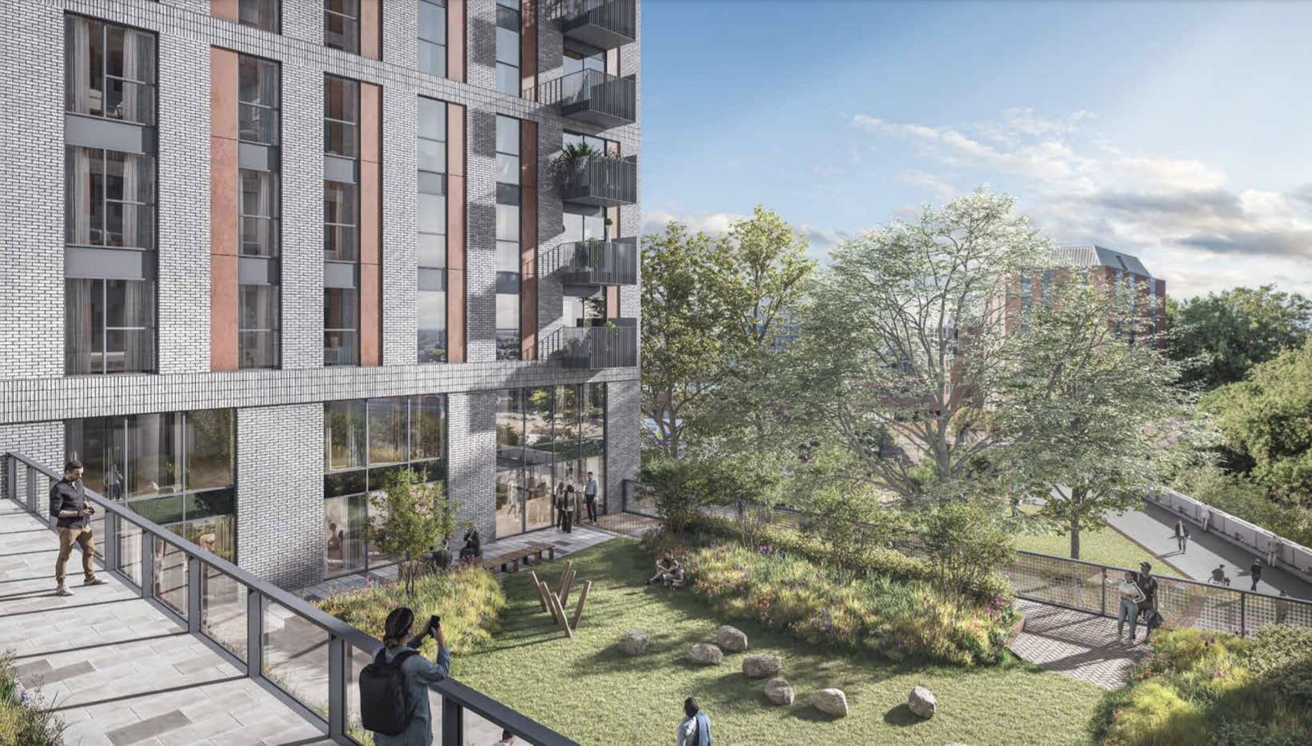The plan entails 644 build-to-rent apartments, comprised of 298 one bedroom flats, 297 two-beds, and 49 three bedroom homes – the latter boosted in this latest revision responding to council policy to encourage family accommodation. Eight ground floor retail units replace roughly what’s lost in the demolition, and mall access from Dusseldorf Way is retained, as is 24-hour access to the downsized car park. Affordable housing, at 7.5%, will be mixed in rather than in a separate building as Moorgarth had previously proposed. Photovoltaics and air-source heat pumps lead the environmental credentials, with minimum EPC B rating promised.