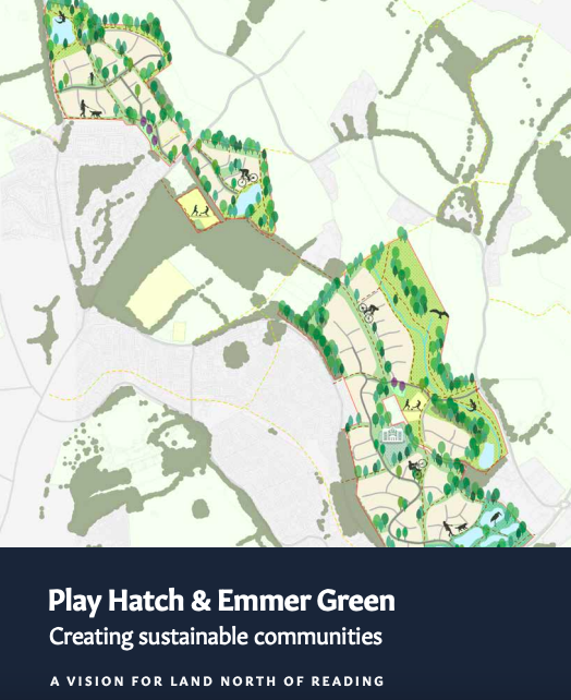 As part of the local planning process, new documents from prospective developers have been published on Reading council’s website. It appears the new materials were made available in May, so it’s with apologies that it took me so long to get round to clicking the link to “2 of 6 Regulation 19 representations F-to-K.pdf“. If you scroll down to page 81 you’ll find a sub-document submitted by Gladman entitled “Play Hatch & Emmer Green – A vision for land North of Reading”. We’d seen reference to this title before, but I think this is the first appearance of the document in the public domain.